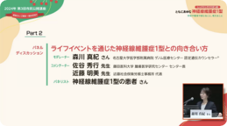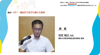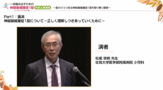 市民公開講座は、一般の方向けに、専門的な知識や新しい情報をわかりやすくお伝えするために開催される講演会です。ここでは、過去に行われた神経線維腫症1型(レックリングハウゼン病、NF1)の市民公開講座の動画をご覧いただけます。